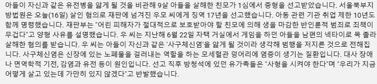 9세 친아들 살해한 엄마 징역 17년