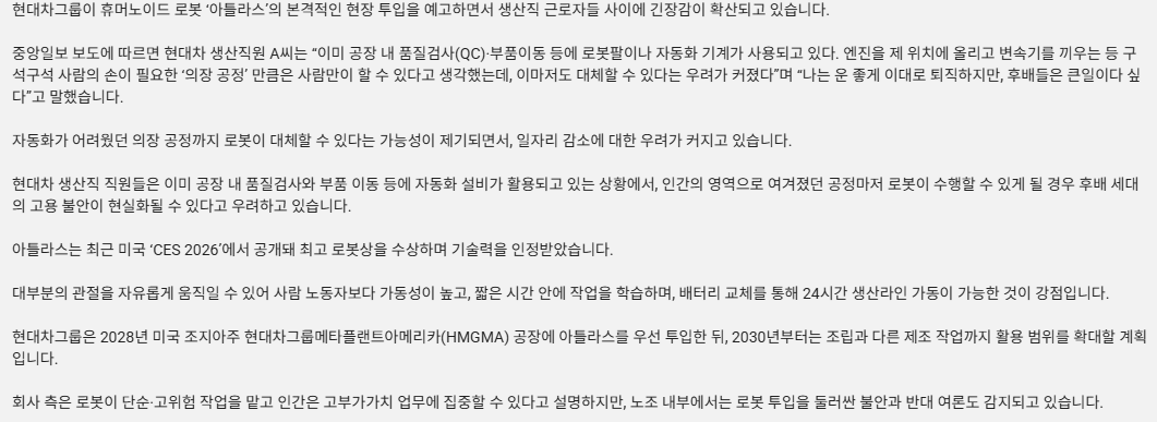 로봇 투입 반대 현대차 생산직