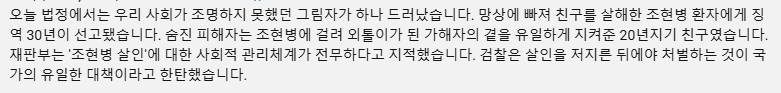 약만 끊으면 가장 가까이에 유일하게 있어준 사람도 죽이는게 조현병