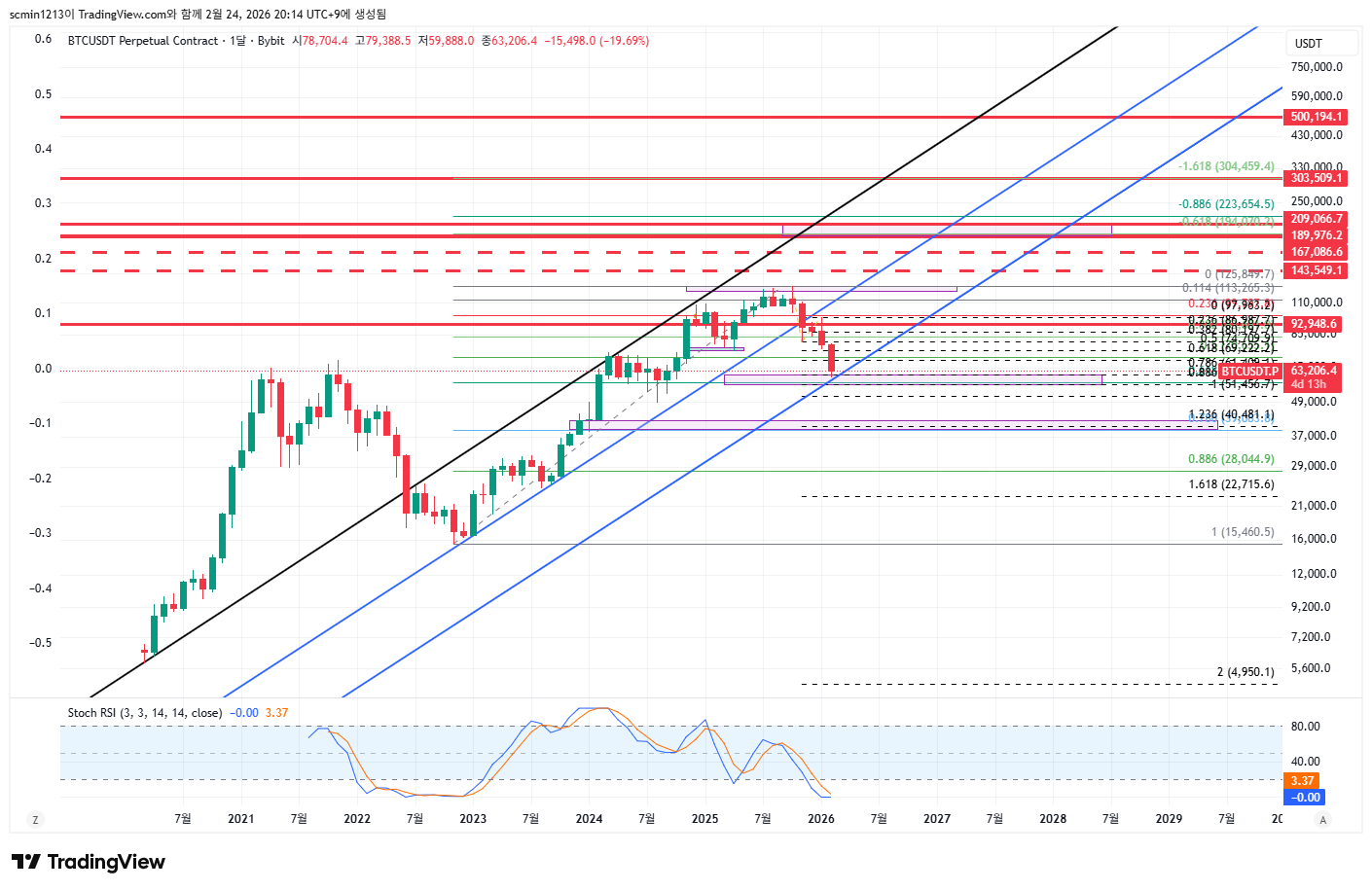 정석대로 여기서 비비다가 더 안내리고 파란선 훼손 안하고 걍 가자~참고로 비트 0.618 되돌림은 57,629 입니다