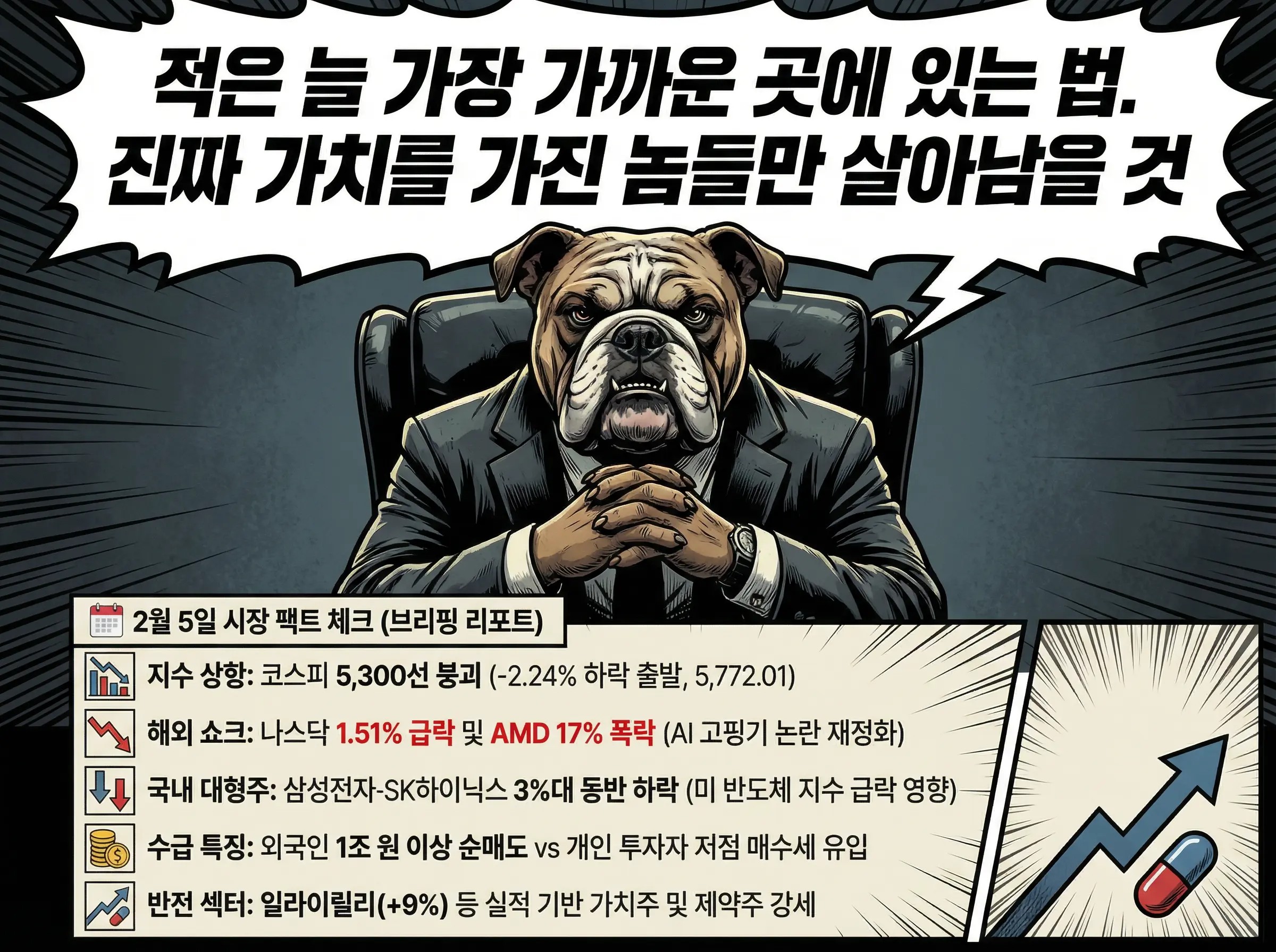 국내: 코스피 5,300 붕괴 (5,272 마감, -2.24%) 📉