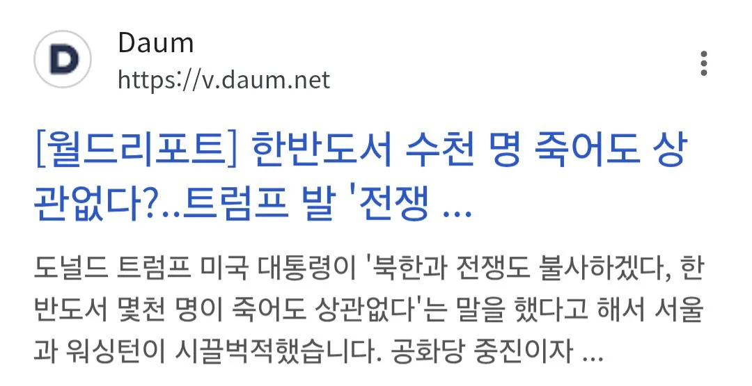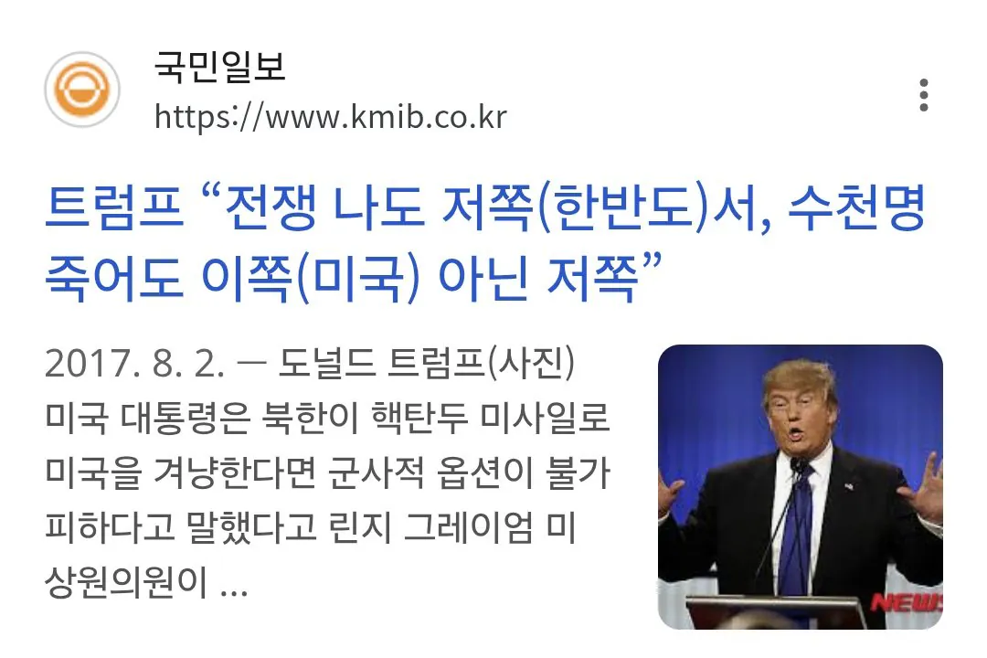 트럼프 대통령, "한반도에서 전쟁 터져서 수천...