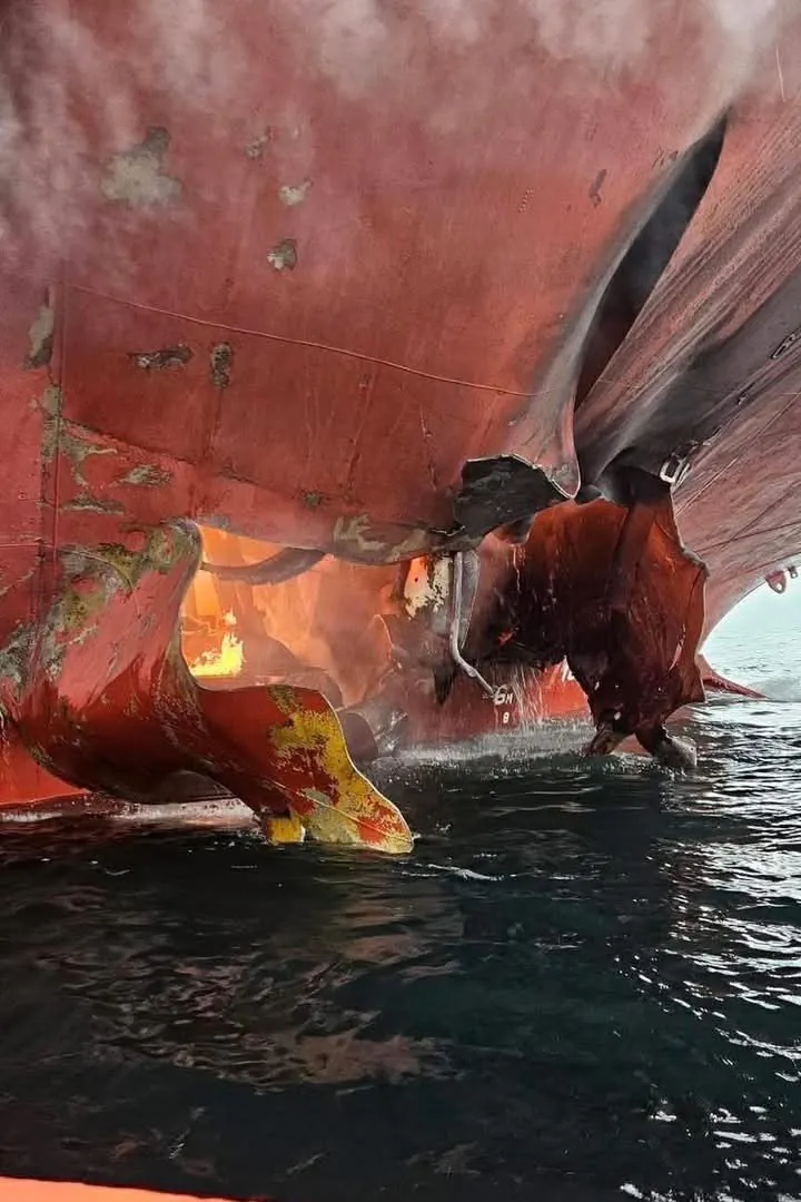 호르무즈 해협 통과중 원인 미상의 물체에 폭격당함