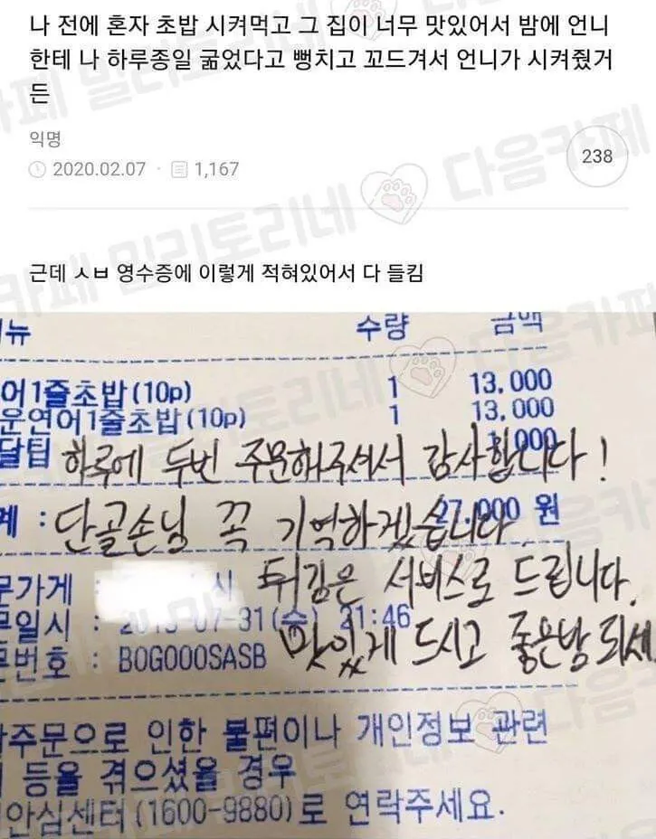 초밥 하루 두 끼는 기본이라더니 결국 들통났다