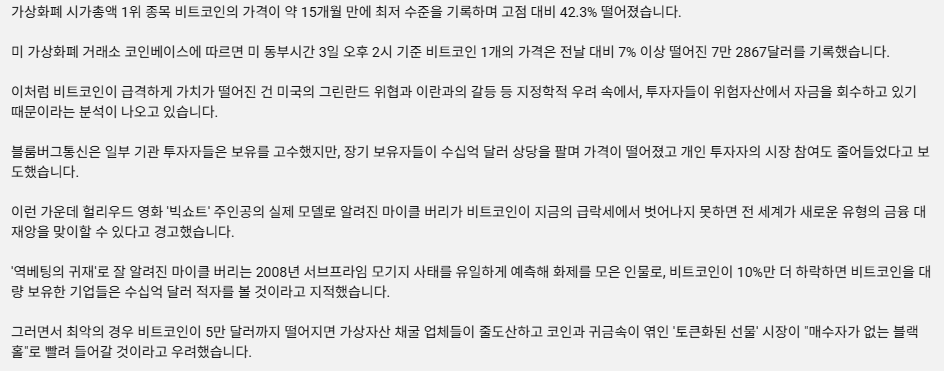 42% 폭락한 비트코인에 '패닉'…'빅쇼트' ...