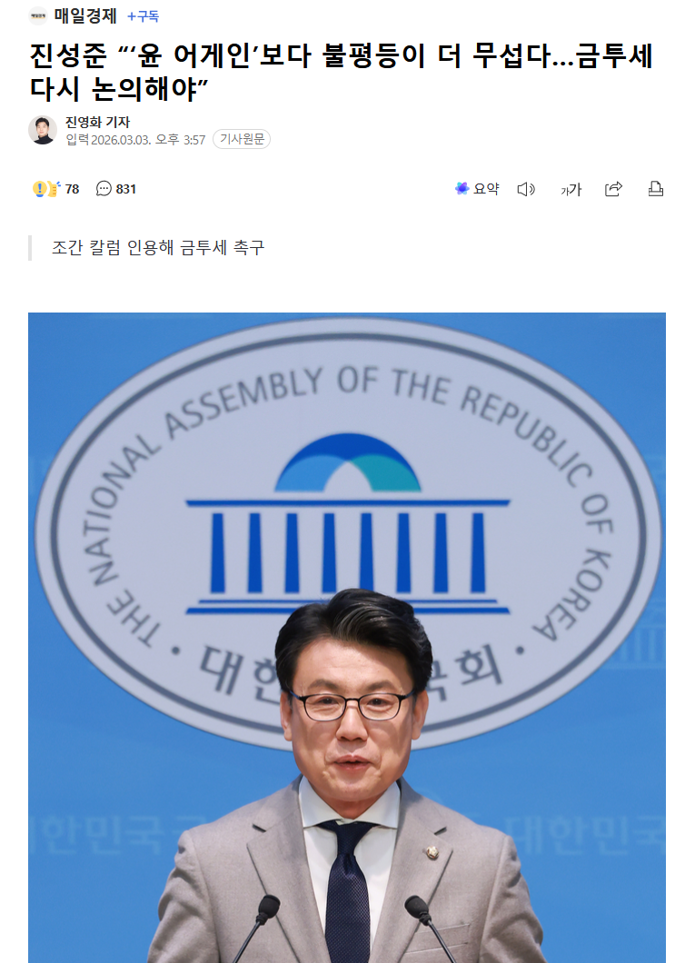 진성준 “‘윤 어게인’보다 불평등이 더 무섭다…금투세 다시 논의해야”