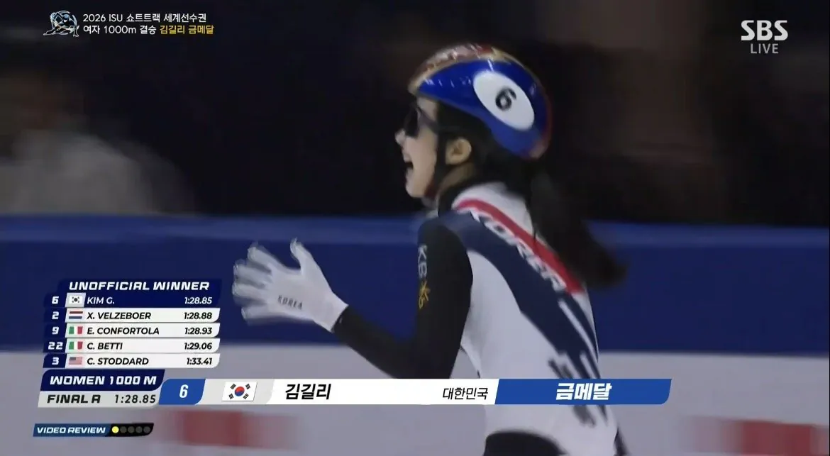 https://chzzk.naver.com/clips/CfTiHCInay세 바퀴 남은 상황까지는 메달이 어려워 보였는데 마지막 순간에 아웃코스로 과감하게 추월하더니 3등에서 1등이 돼버렸습니다. 금메달 획득!