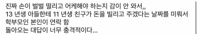 13년생 아들한테 빌려간 돈을 여자가 계속 못 갚음.