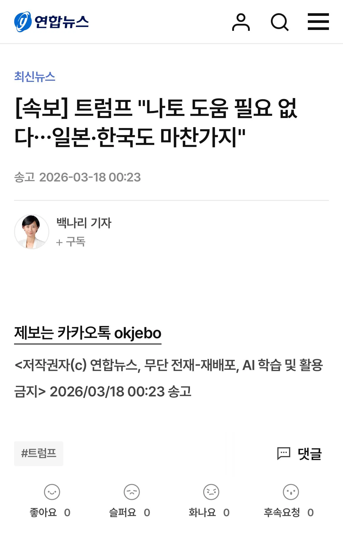 나토 도움은 못받는다는 트럼프. 일본이랑 한국도 자기 발로 서야 한대