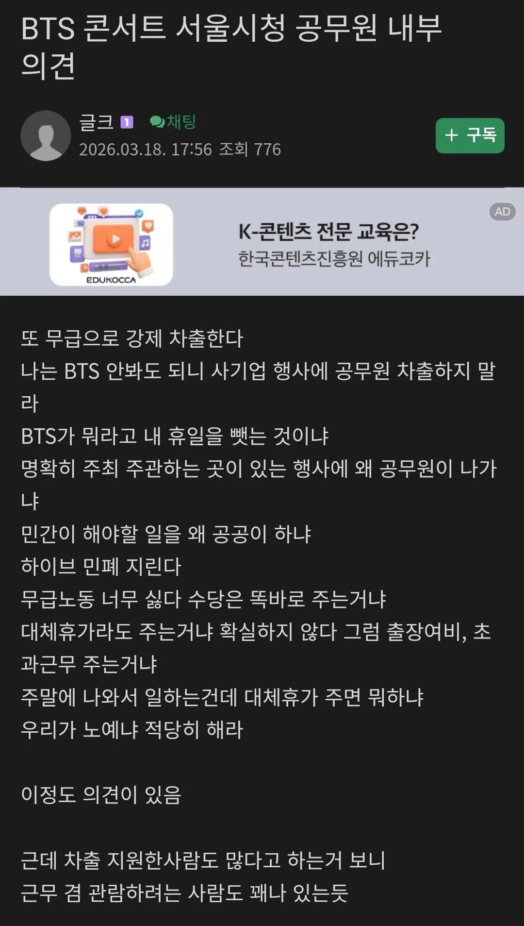 글쓴이는 서울시 공무원이라고 밝혀