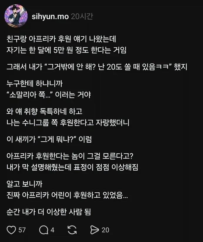 달마다 오만원씩 아프리카 기부하는 친구