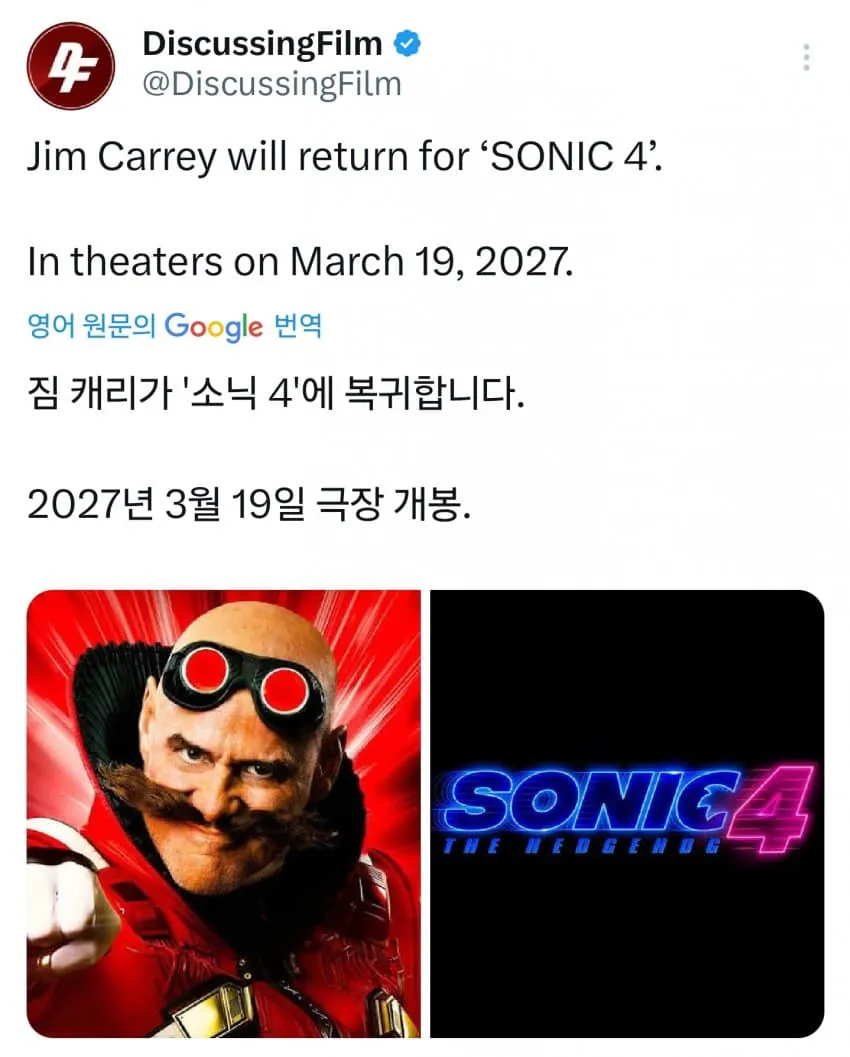 수퍼 소닉 4에서 에그맨 역으로 재등장한다고 하네그 캐릭터가 정말 재미있었나봄은퇴했다가 번복한 것도 모자라 또 출연할 정도니까 그 역할이 얼마나 매력적인지 알 수 있지ㅋㅋㅋ