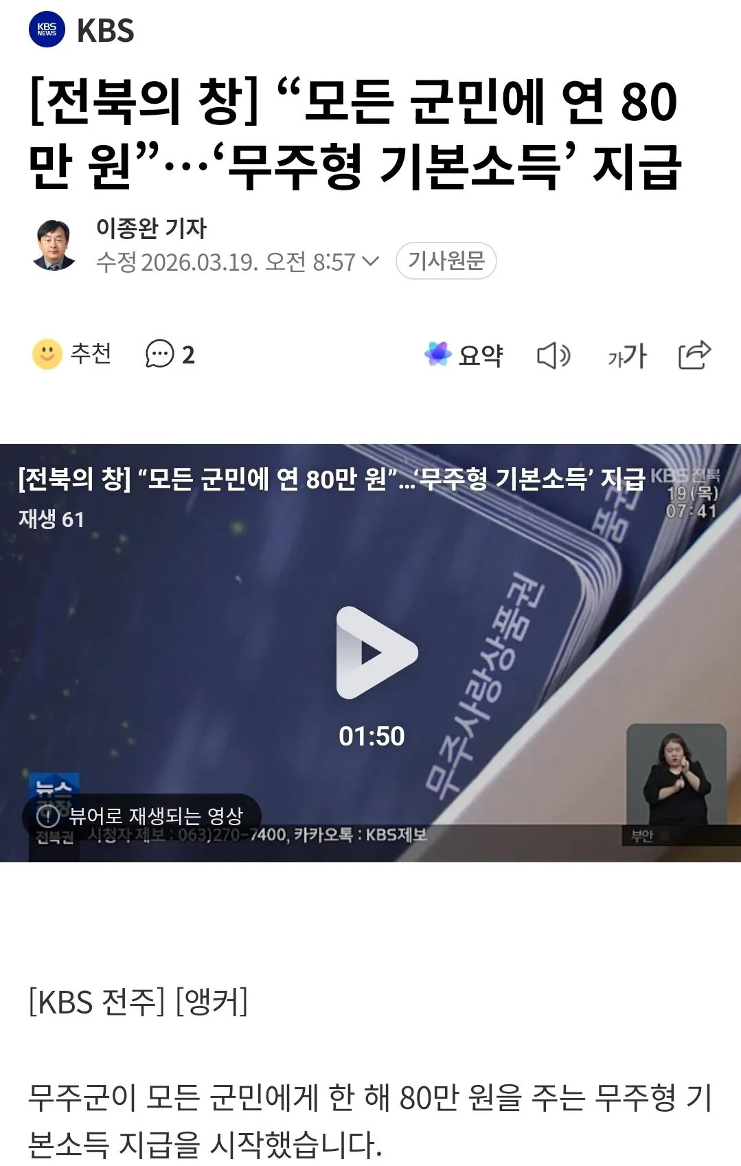 무주군 주민이면 누구나 80만원 받는다더라