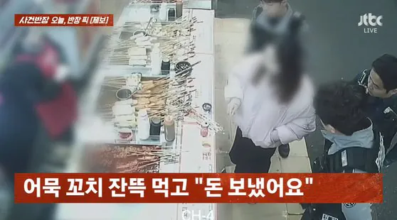 지난달 18일에도 이 여성이 방문해 어묵 13마리와 음료수 2병을 마신 후 1만5000원을 내야 했습니다. 여성이 계좌 이체 인증 화면을 직원에게 보여줬는데 직원이 뭔가 이상함을 감지했다고 합니다.