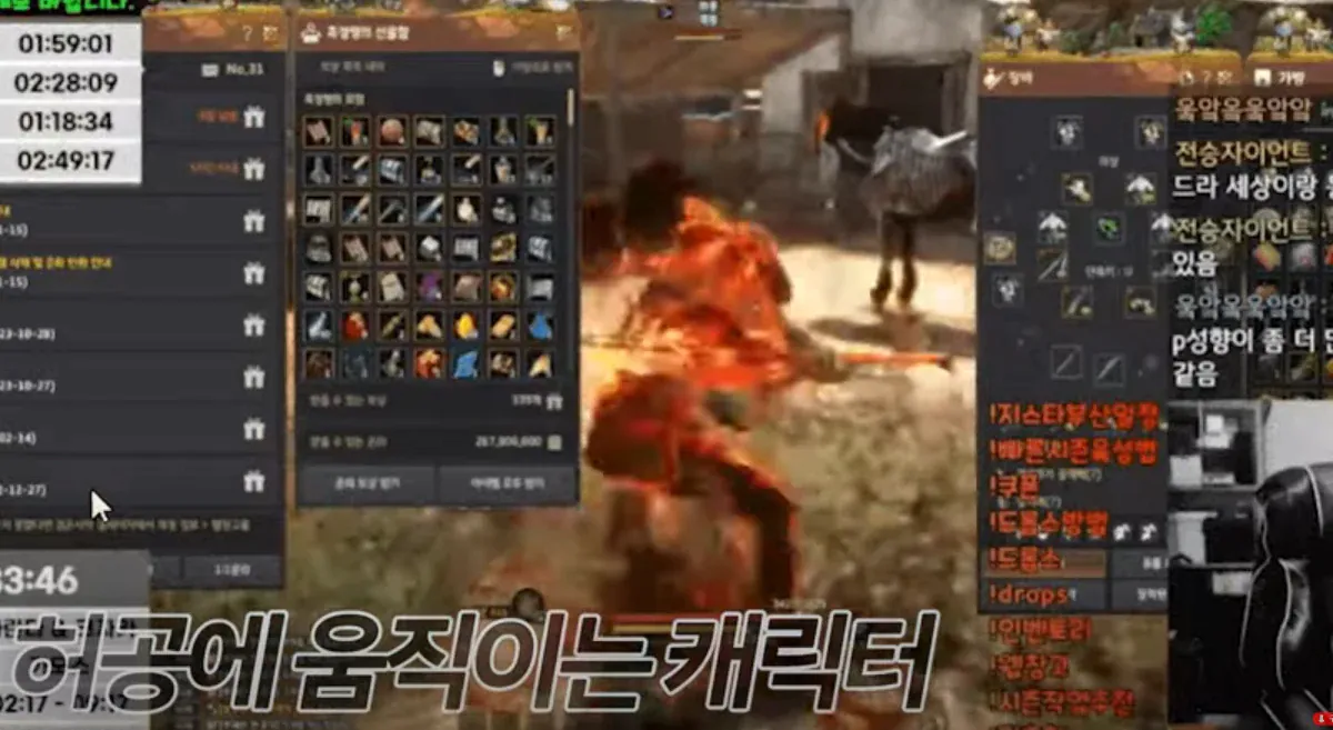 2. 이걸 본 다른 스트리머가 펄어비스의 막장 서비스에 분노, 방송에서 똑같이 이어폰을 떨어뜨리며 매크로를 발동시킴
