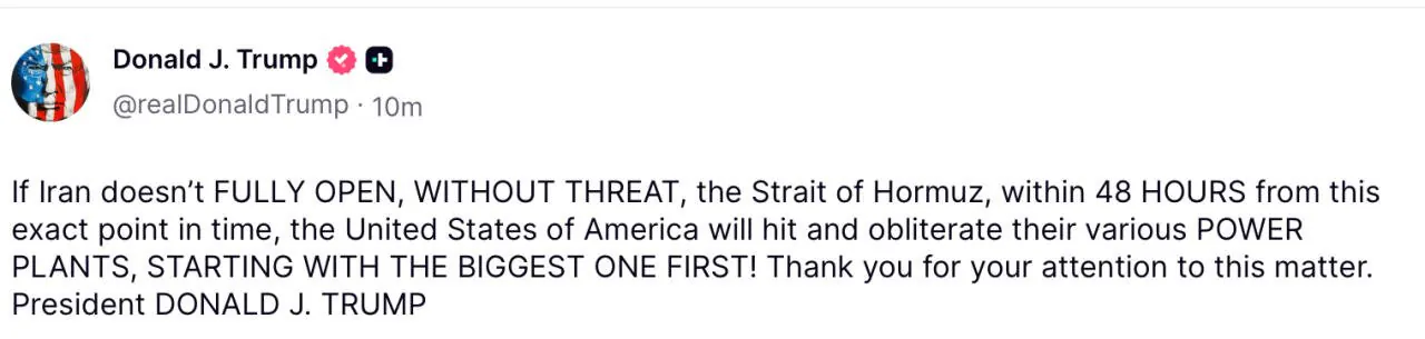 트럼프 이란 발전소 공격 협박... 호르무즈 통로 개방 요구