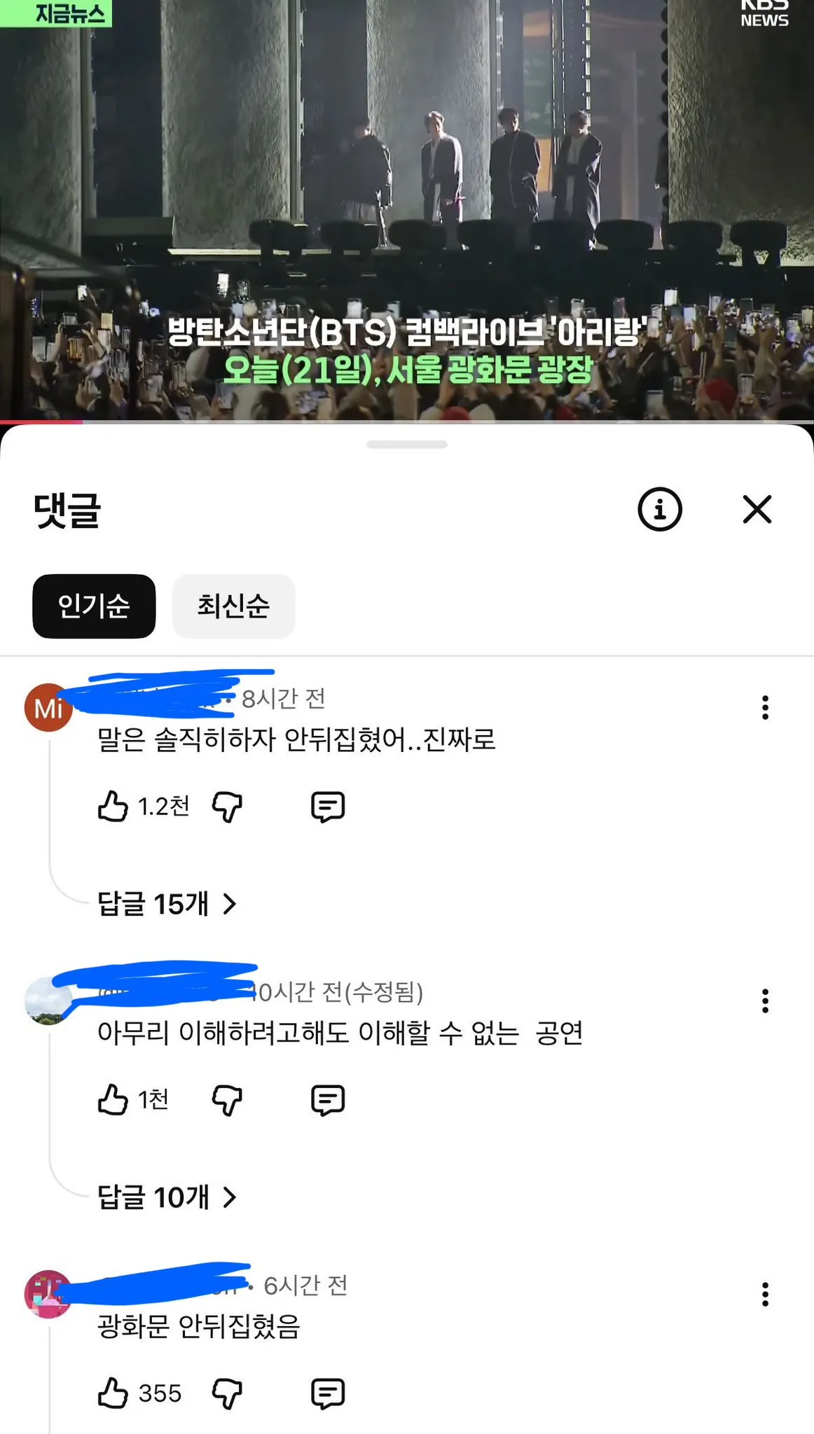 BTS 광화문, 공연 관객 반응이 미쳤다더