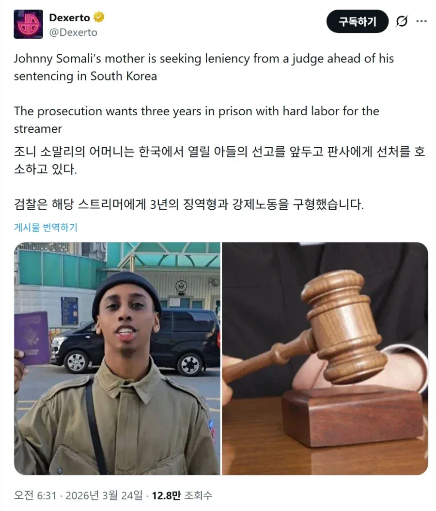 어머니가 법정에서 판사에게 감형을 요청하는 중