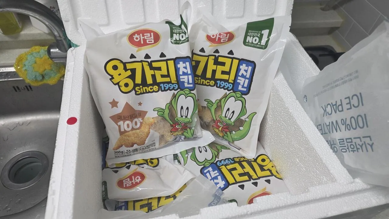 용가리 치킨 도착했는데 반찬이 대박이네