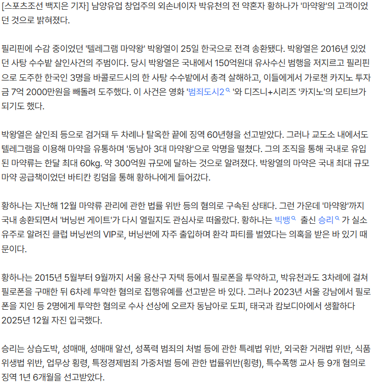 황하나, '마약왕' 고객이었다…前 빅뱅 승리 ...