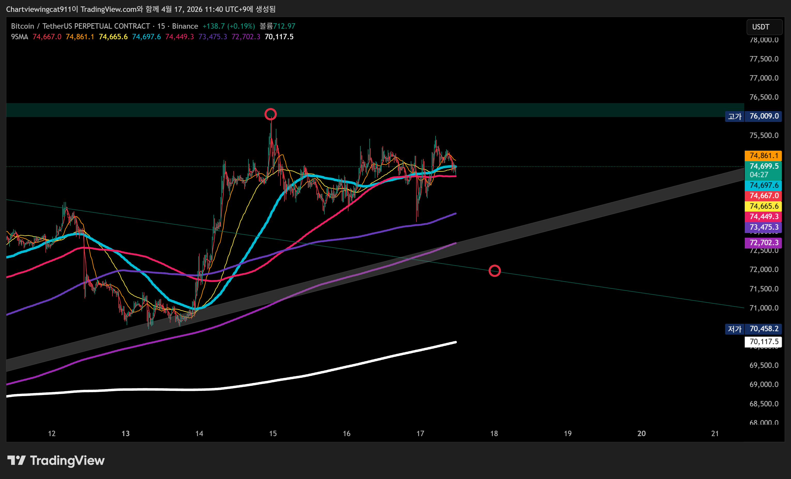 큰봉에서 보면 상방 유력 차트인데,,,,모르겠네요,,,전 15분봉 역배열 되기전까지는 숏 포지션 유지 합니다,,,단타관점,,,