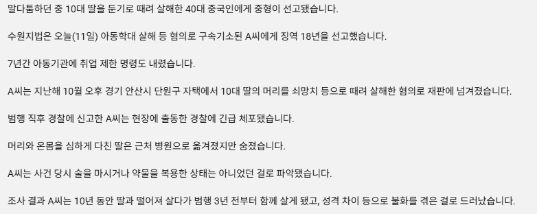 쇠망치로 딸 25차례 때려 살해, 근데 징역은