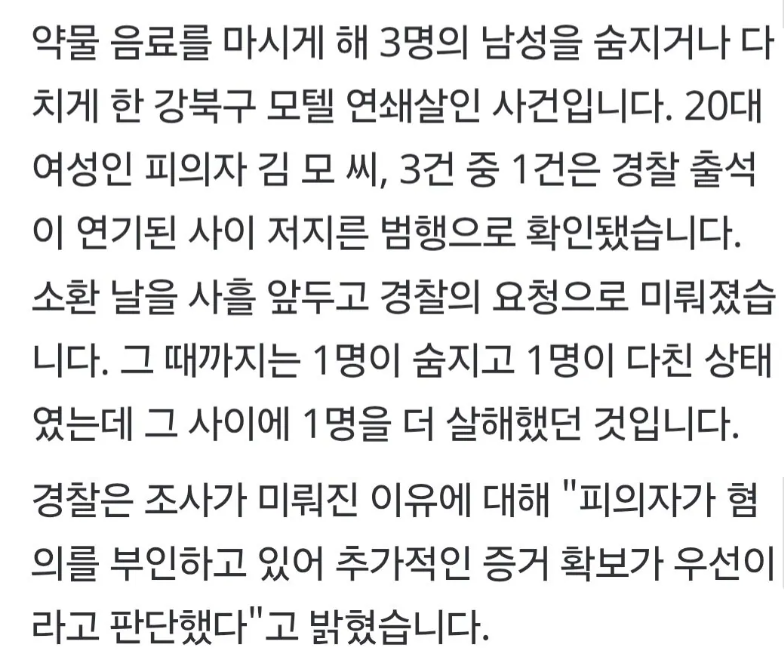 [단독] '모텔 연쇄살인' 20대, 경찰 요청으로 출석 미뤄진 사이 '1명 더 살해'