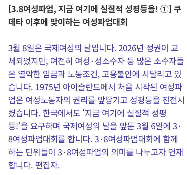 [속보] 페미단체 3월 6일 여성 총파업 예고