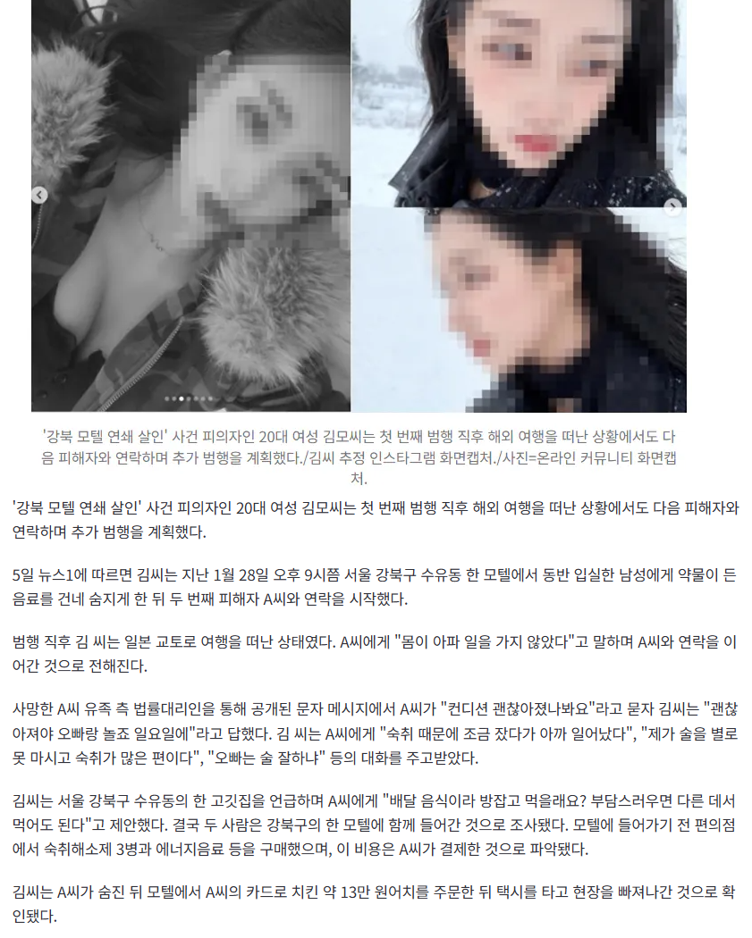 살해 뒤 日 여행, 피해자 카드로 치킨 주문…'사이코패스' 모텔 살인녀