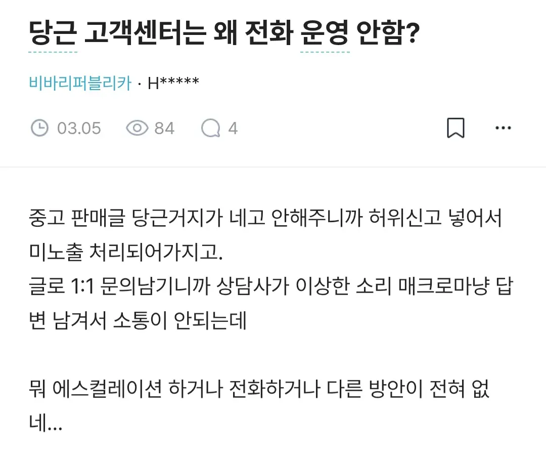 그거 말하는 거네AI 챗봇은 복붙 답변만 하고진짜 문의하면 일주일까지 걸린다더라경쟁사들 자충수 때리는 와중에도이 서비스는 여전히 전화 고객센터를 안 만들었대규모가 이 정도면 이제는 필수 아닐까