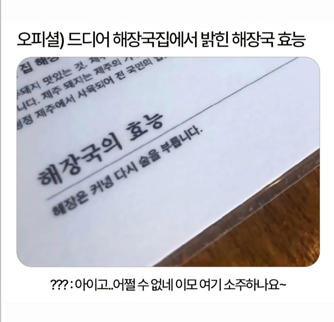 숙취 회복은 해장국이 정답이라는데