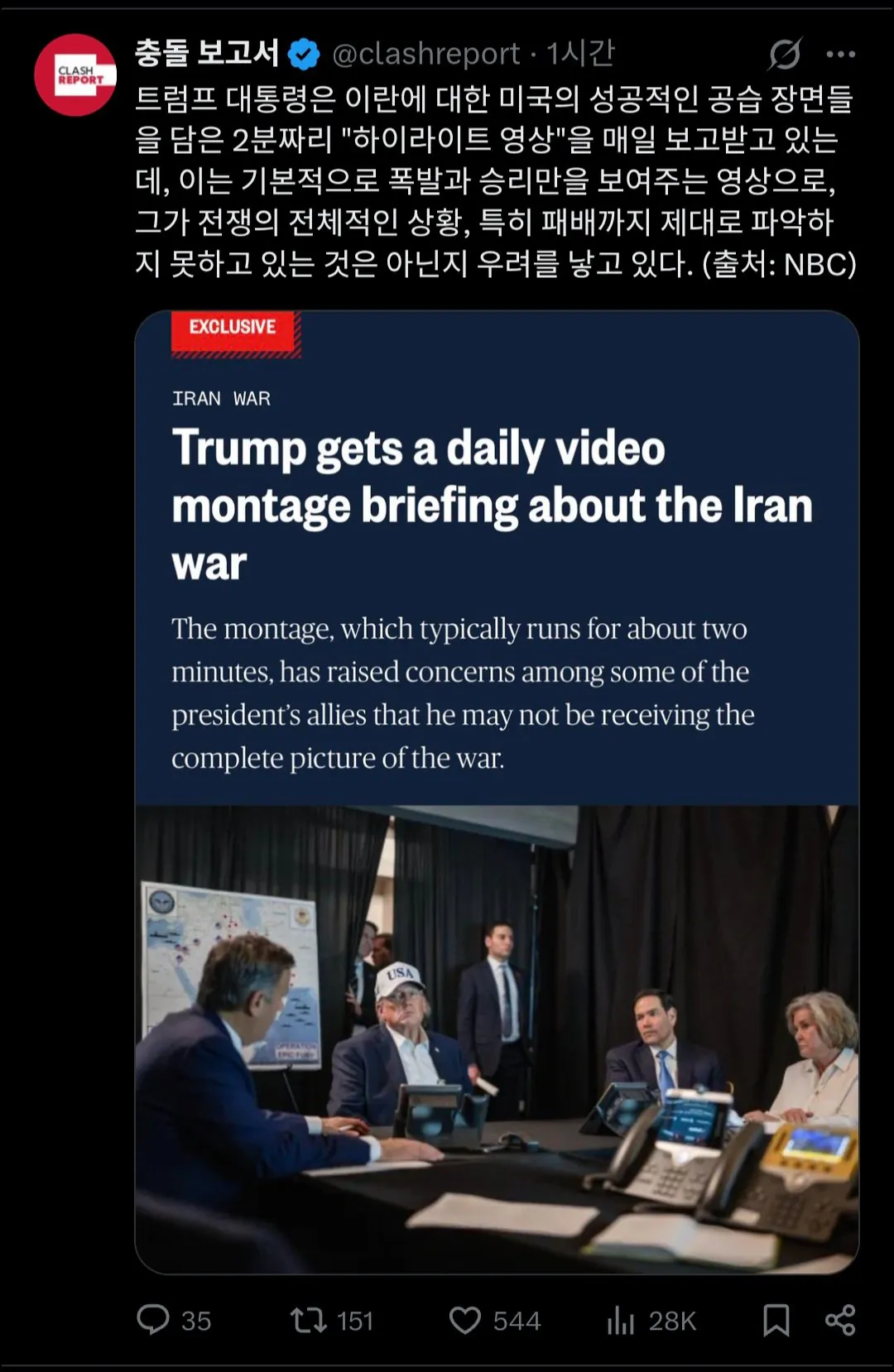 트럼프, 이란 공습을 경기 하이라이트처럼 본다고?