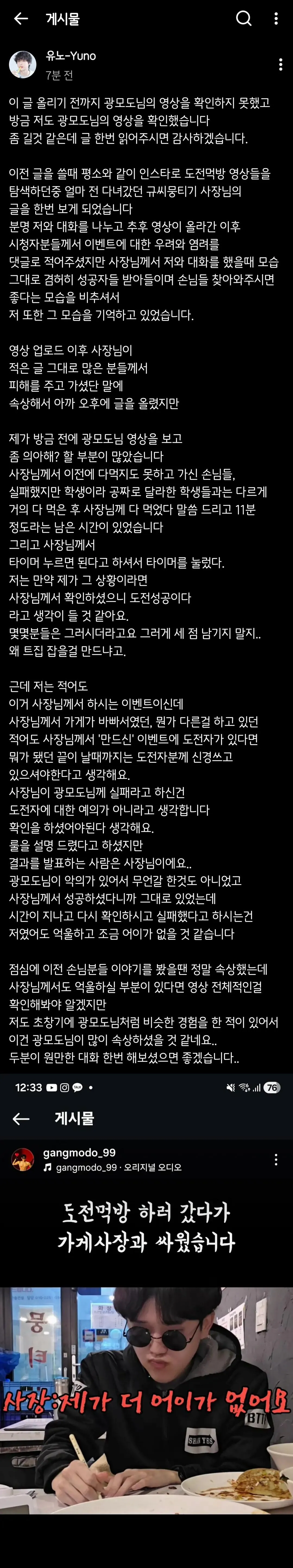 포텐간 먹방 논란에 뜬금없이 개입한 유튜버의 ...