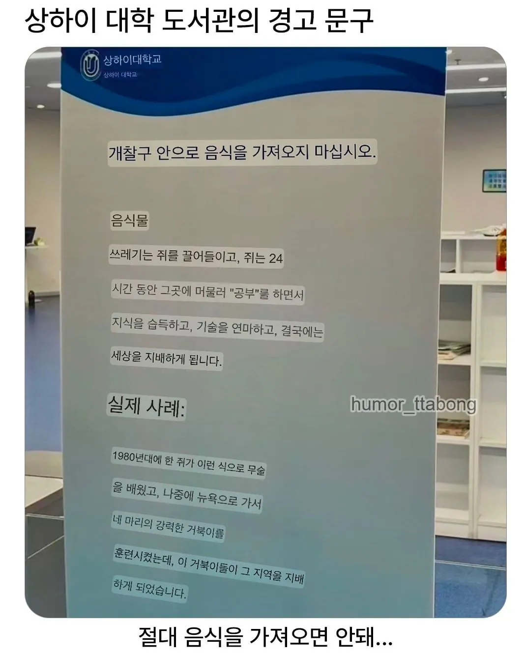 상하이 도서관 경고판 내용 공개