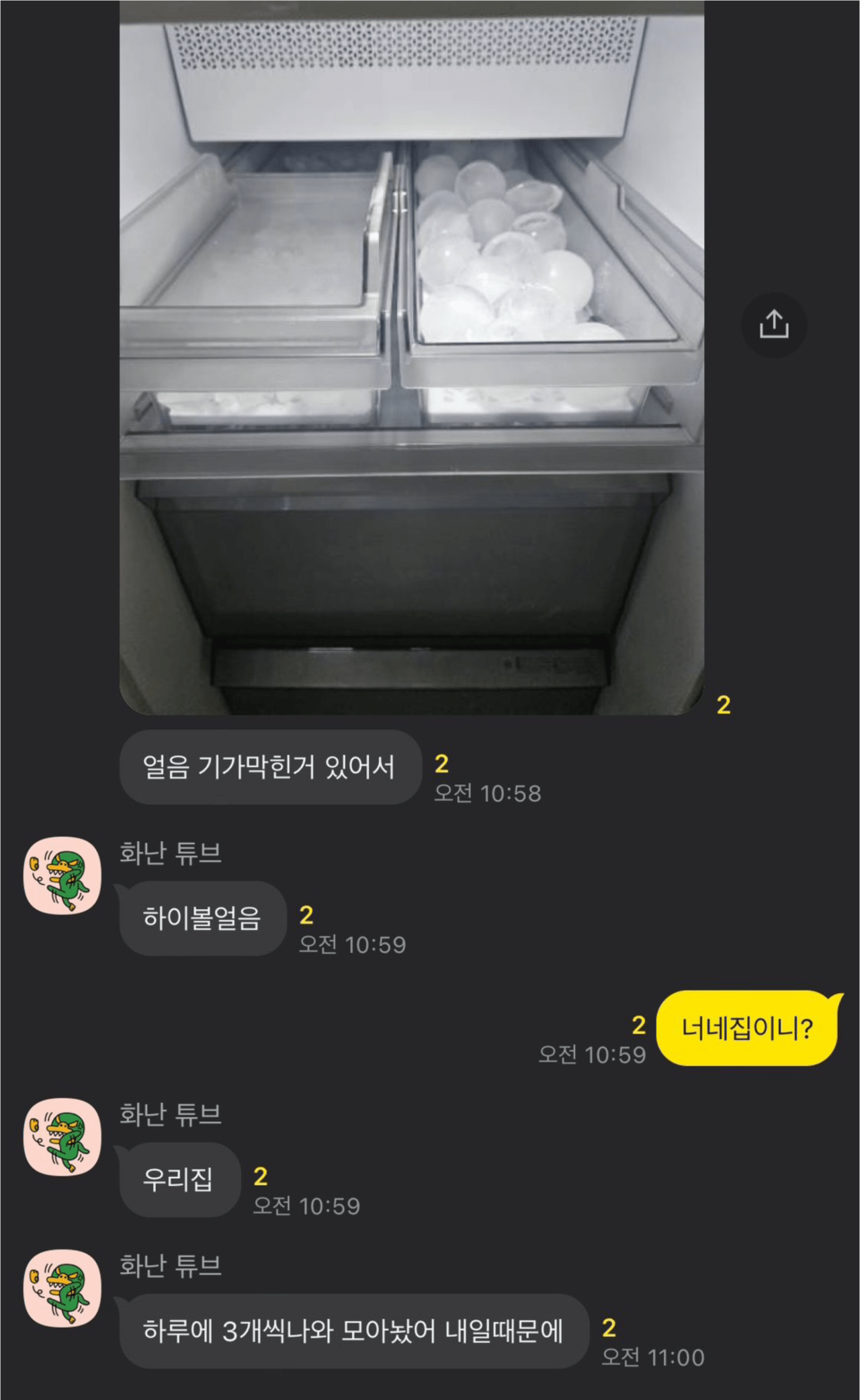 음료 식힐 얼음 때문에 냉동실을 포기한 친구