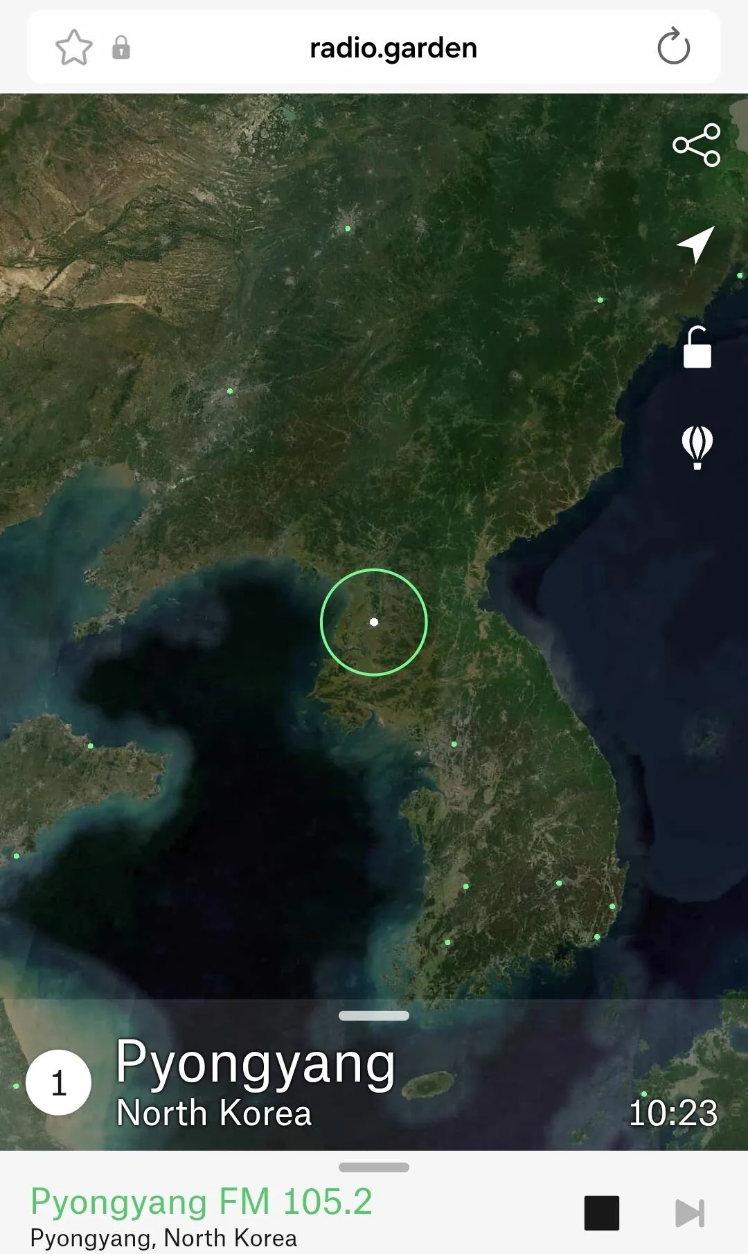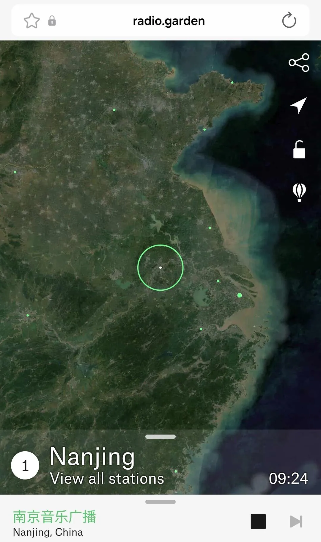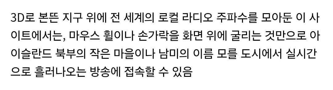 radio.garden/browse라는 사이트인데 전 지구 라디오 방송을 실시간으로 청취할 수 있다