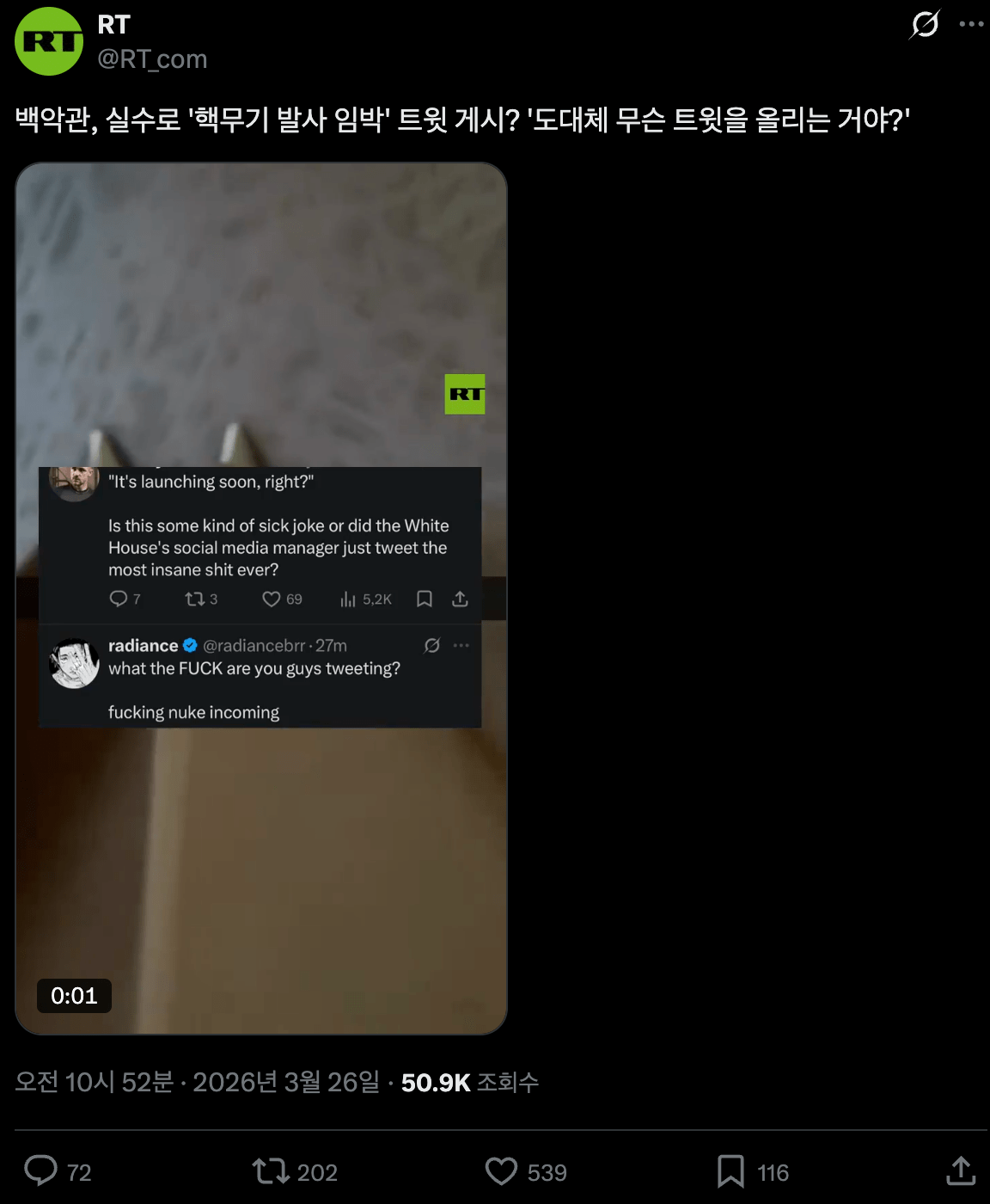 백악관 공식 계정에 뭔가 수상한 영상이 업로드됐다가 1시간도 안 돼서 삭제된 거 같음.