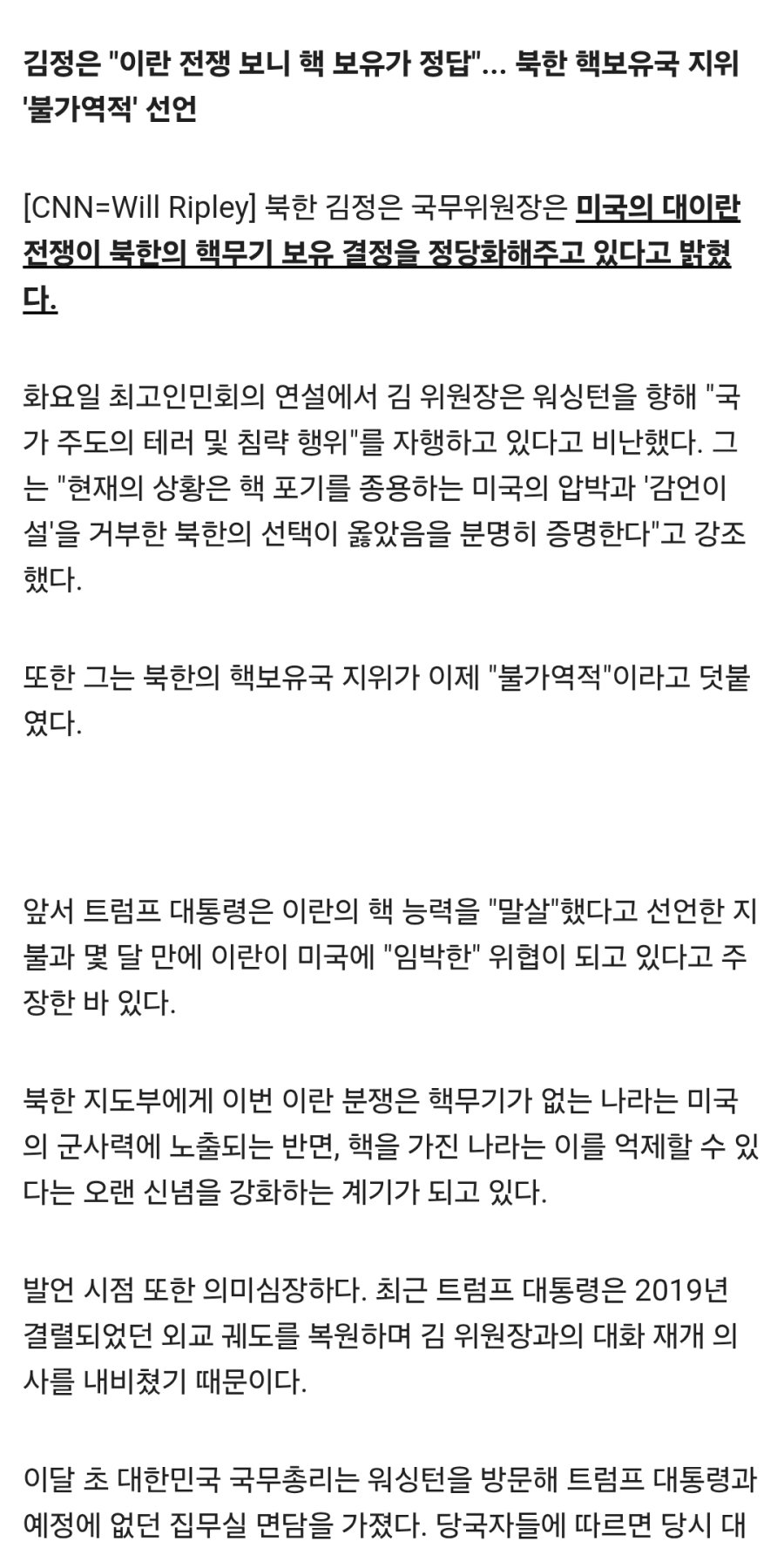 이란 전쟁 보니까 핵무기가 필수라고 하네