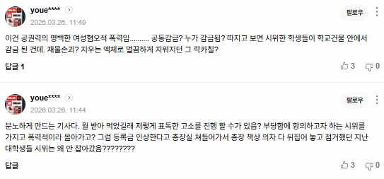 동덕여대는 이를 알면서도 외면하고 있으며, 보상 문제가 무서워 책임을 회피하는 모양이다.