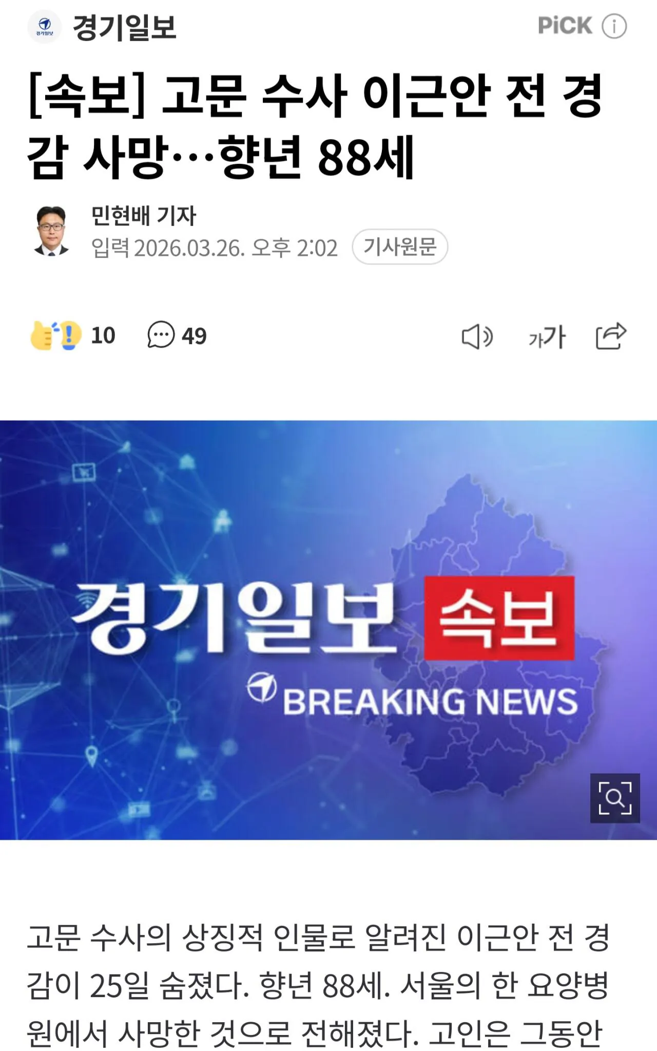 [속보] 고문 수사 이근안 전 경감 사망…향년...