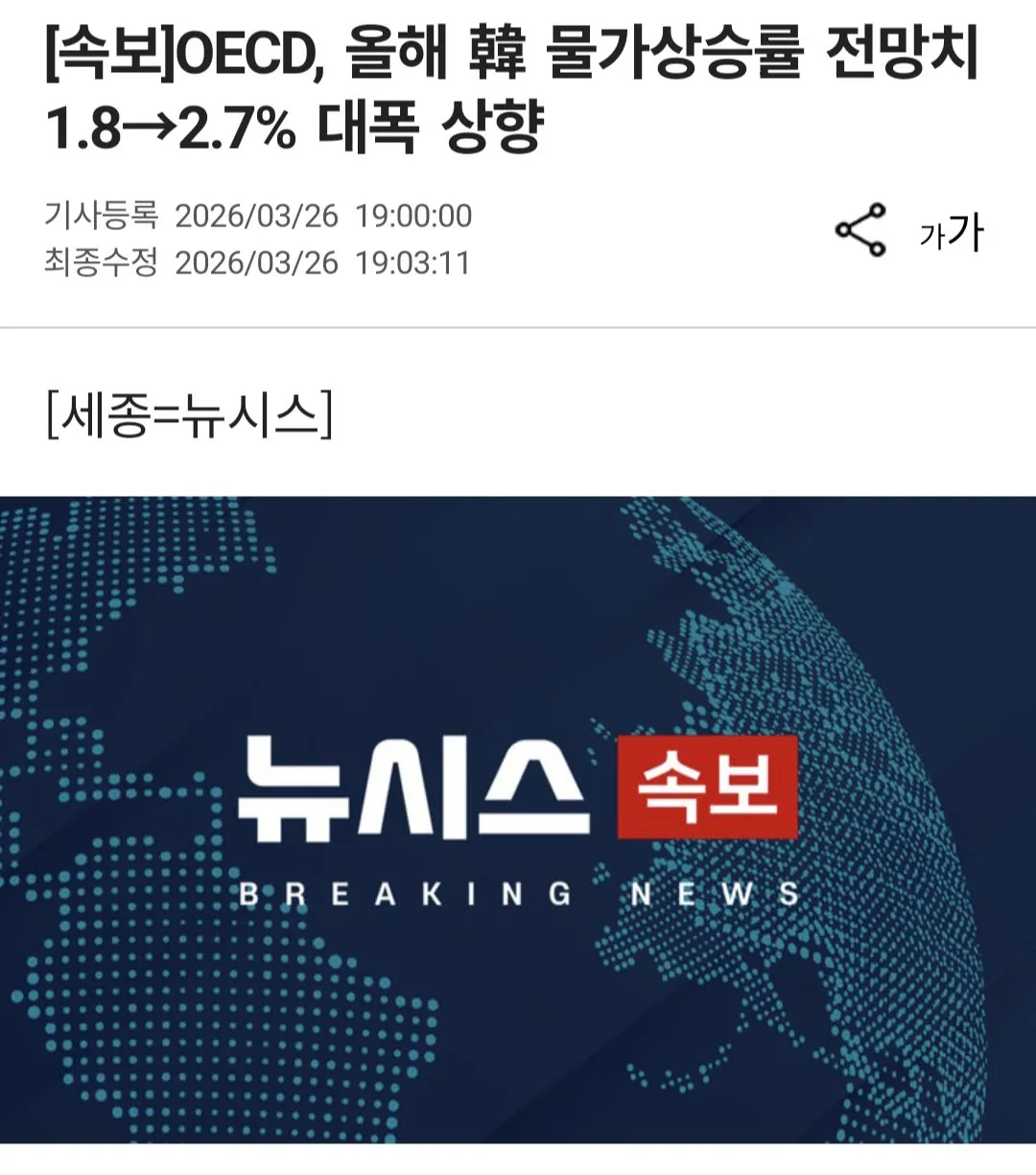 올해 한국 물가 2배 이상 오를 거라는 OECD 전망
