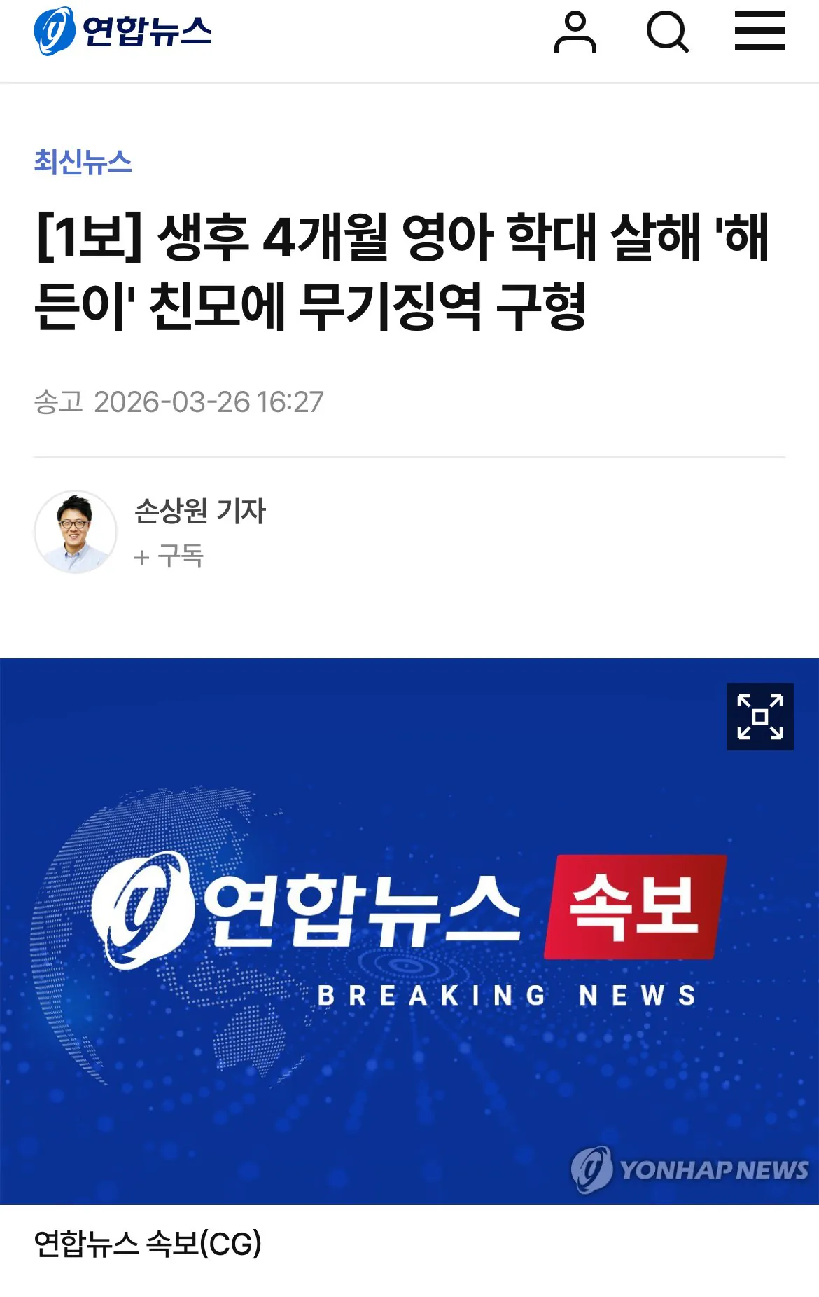 [1보] 생후 4개월 영아 학대 살해 '해든이...