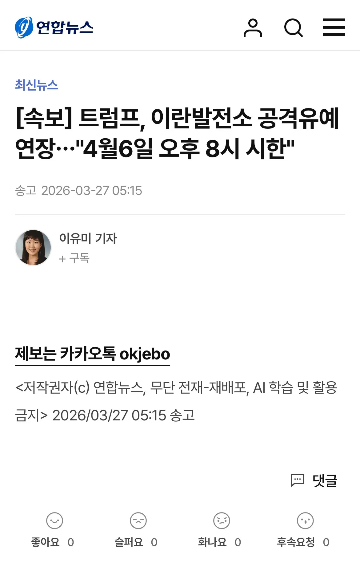 [속보] 트럼프, 이란발전소 공격유예 연장…"...