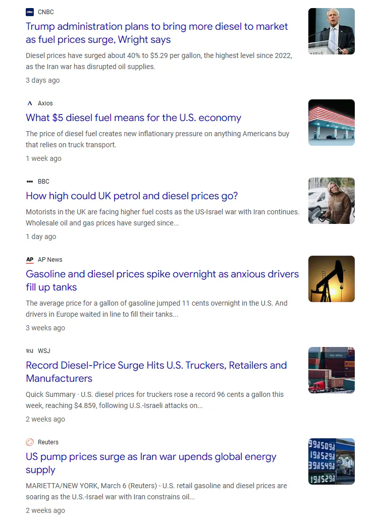 유류값 상승이 진짜 답답함디젤이 5달러까지 뛰어서 운송 업계 터질 지경