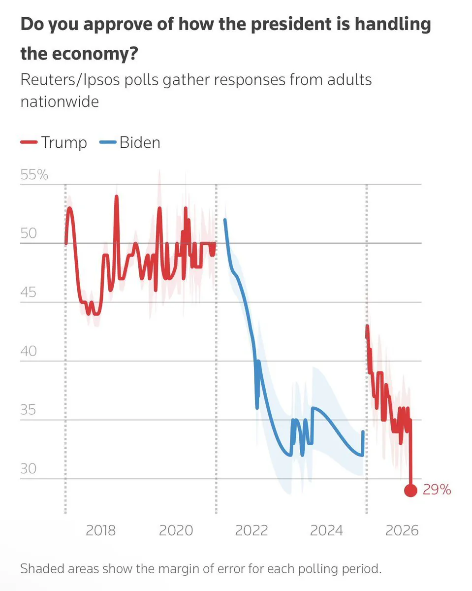 경제 지지율 추락, 바이든 저점까지 갔다