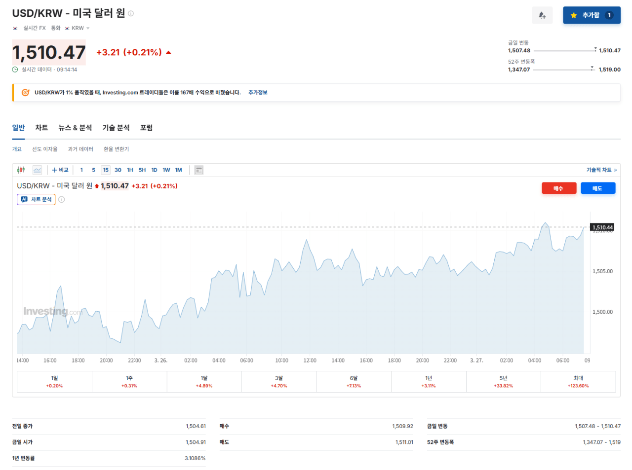 환율 1500원대 돌입, 하이닉스 90선까지 ...