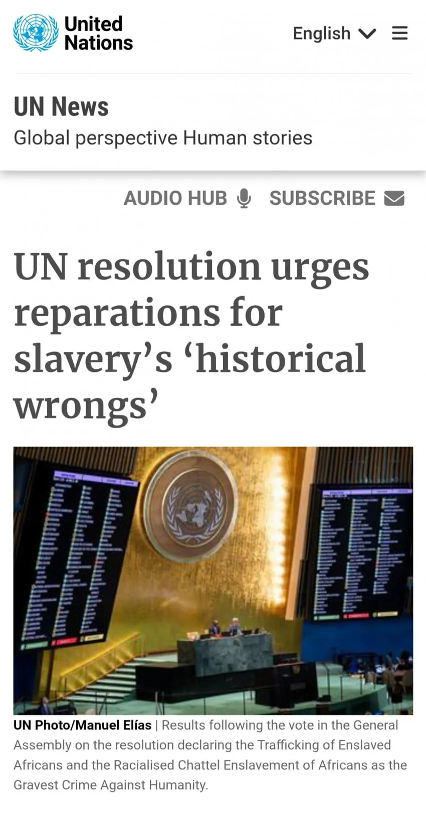 3월 26일, UN 총회에서 흥미로운 투표가 열렸다. 아프리카인 노예화를 역사상 가장 심각한 범죄로 볼지에 대한 전 세계 투표였다.