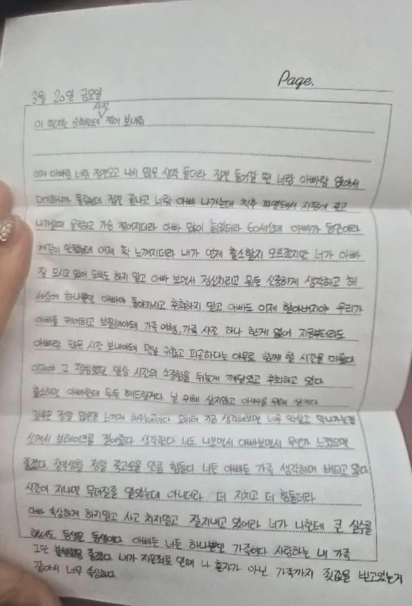 감옥에서 만난 아버지의 모습이 생각보다 많이 늙어있었다고 한다. 그 순간 출소 후 남은 인생을 아버지 곁에서 효도하며 살아야겠다는 다짐이 생겼다고 밝혔다.감옥 생활이 정말 버티기 힘들 정도로 고통스럽다고 했고, 이곳에서의 매일이 자신을 돌아보게 만들었다고 했다. 특히 이전에 책임감 없이 아무렇게나 살아왔던 자신의 모습을 되짚어보며 깊은 후회를 품고 있는 중이라고 전했다.