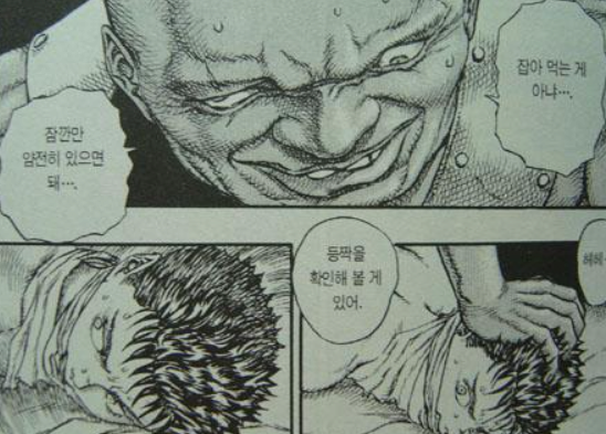 (3) 같은 용병단의 도노반이라는 놈에게 끔찍한 폭력을 당하는데, 알고 보니 자신의 양아버지 감비노가 돈을 받고 가츠를 그 놈에게 넘겨버린 것