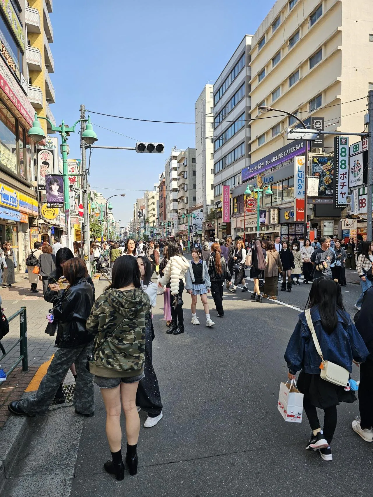 신주쿠 옆 작은 동네인데 원래 좁은 도로에 사람들이 너무 많아서 감당이 안 됐대요. 그래서 주말마다 자동차 통행을 제한하는 시범을 시작했어요. 도쿄의 긴자, 신주쿠, 이케부쿠로 같은 번화가에선 공휴일에 이런 식으로 자주 하는데, 일본에선 이걸 '보행자 천국(歩行者天国)'이라고 부르고 있어요.